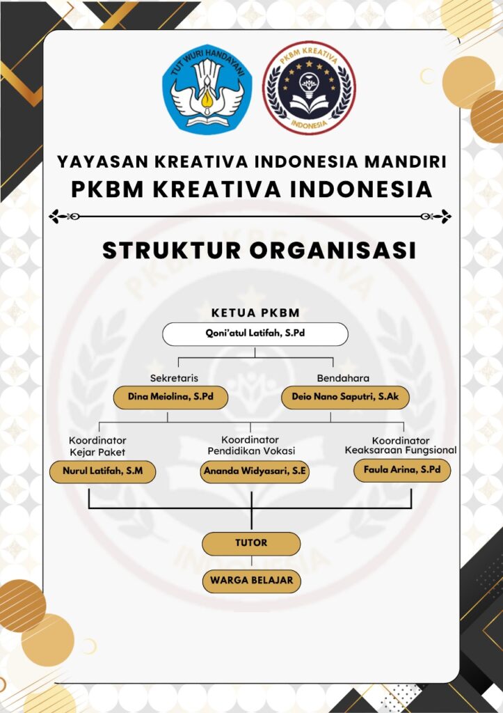 PKBM (Pusat Kegiatan Belajar Masyarakat) Kreativa Indonesia merupakan Lembaga pendidikan Non Formal yang menyelenggaran pendidikan Kejar Paket A (setara SD), Kejar Paket B (setara SMP) dan Kejar Paket C (setara SMA)